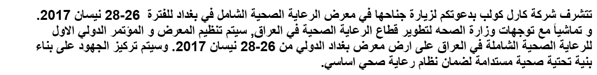 كارل كولب تجهز احدث المعدات والاجهزة الى كلية طب الاسنان في جامعة بغداد بغداد ، تشرين الاول/ اكتوبر 2015 في مجال طب سريع التغير والتطور مثل طب الاسنان فان من الضروري مواكبة ذلك التطور ومستجداته والبقاء في قمته من اجل ضمان تعليم شامل لاطباء اسنان المستقبل وتحسين منظومات العلاج. لهذا السبب تم التعاقد مع شركة كارل كولب لمساعدة كلية طب الاسنان في جامعة بغداد في اطار عملية تحديثها وذلك من خلال تجهيزها باجهزة متنوعة مثل كراسي طب الاسنان والتركيبات الصناعية (مثل الجسور والتيجان) ومنظومات المحاكاة واجهزة التصوير بانواعها المختلفة لاقسام الكلية.